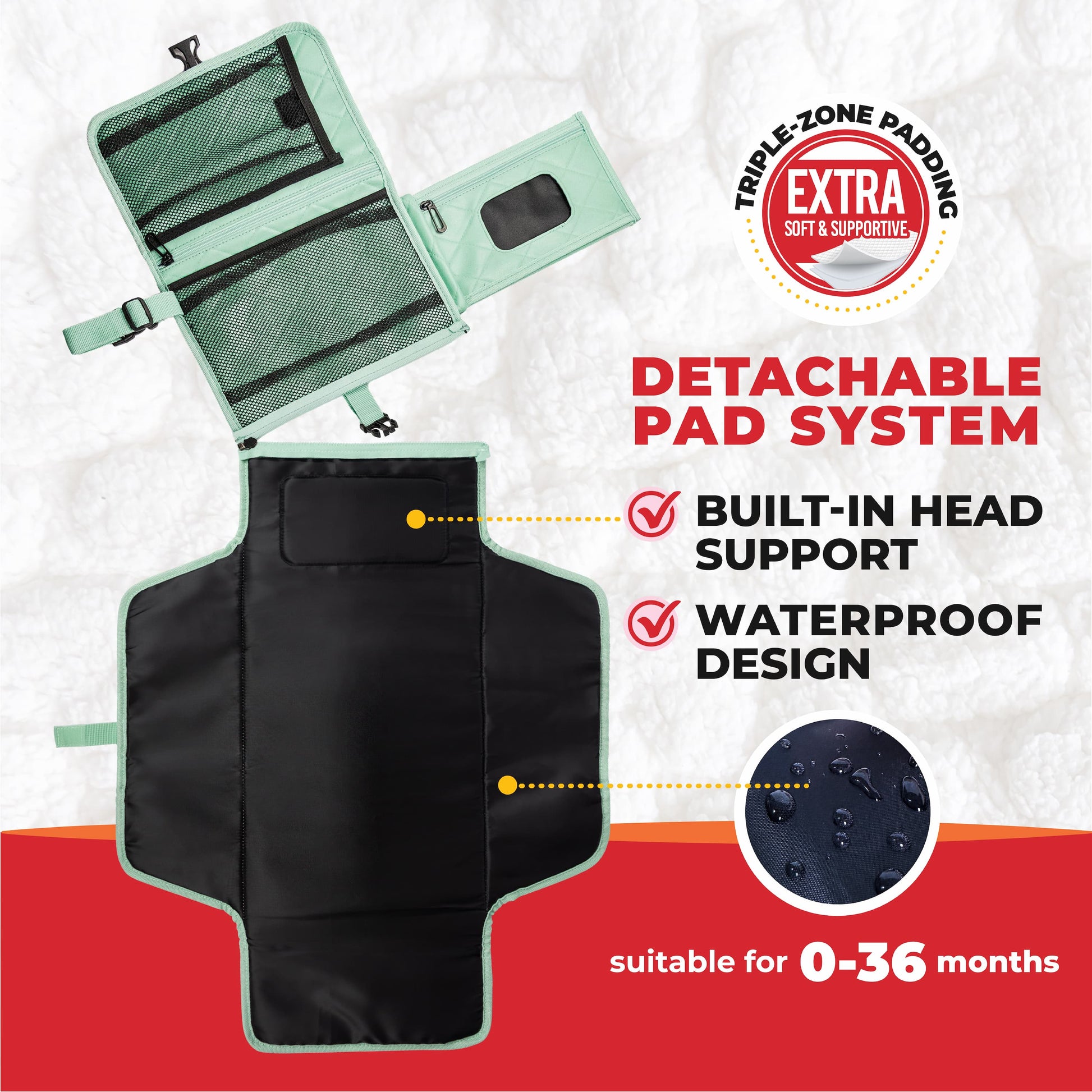 A built-in smart pocket holds your favorite wipes securely in place, keeping them easily accessible whether the pad is folded or open. You’ll never have to dig through a bag again during urgent diaper changes.